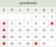 4月のお休みは各日曜日、10日(土)、