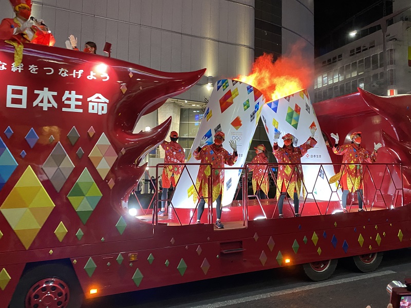 実際は聖火ランナーが走る前にスポンサー企業さんが↑こんな感じで練り歩き、